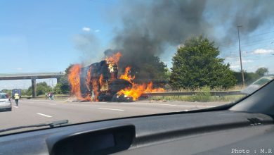 Vidéo : camion de paille en feu à La Maxe, l’A31 coupée (article mis à jour)