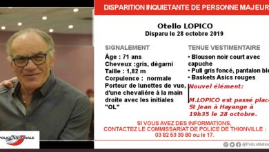 Un appel à témoins a été lancé suite à la disparition inquiétante d’Otello LOPICO le 28 octobre 2019 à Hayange.…