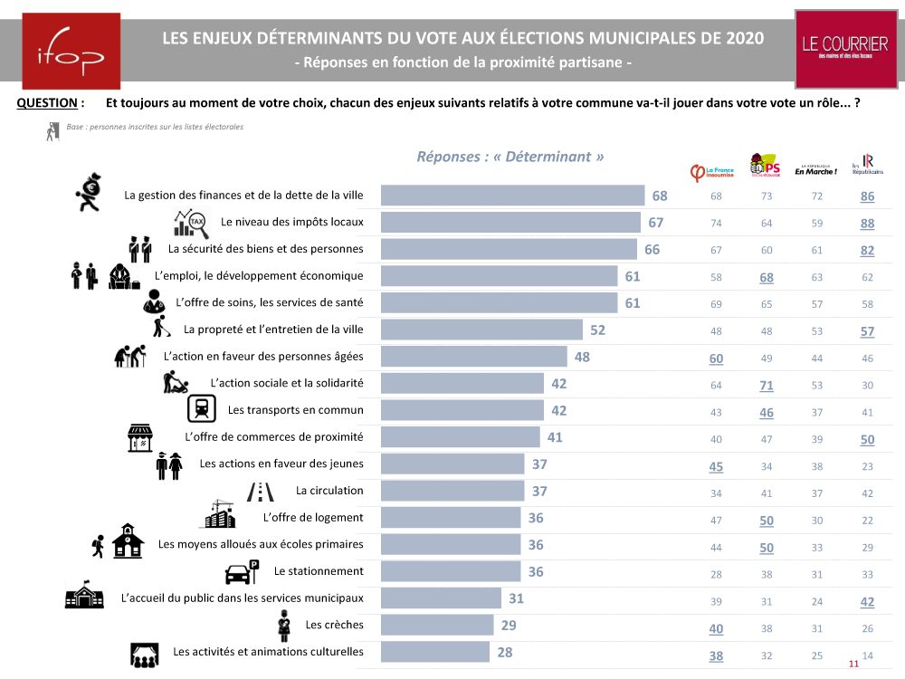 A la question « au moment de votre choix, chacun des enjeux suivants relatifs à votre commune va-t-il jouer dans votre vote un rôle ? », dix-huit critères ont été étudiés et classés.