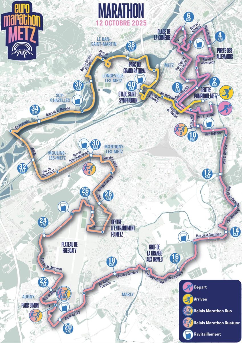 À l’occasion de l’Euro Marathon Metz, seule course autorisée ce dimanche par décision de la préfecture de la Moselle, des perturbations sont prévues sur le territoire métropolitain, à Metz, Marly, Augny, Montigny-lès-Metz, Moulins-lès-Metz et Longeville-lès-Metz.