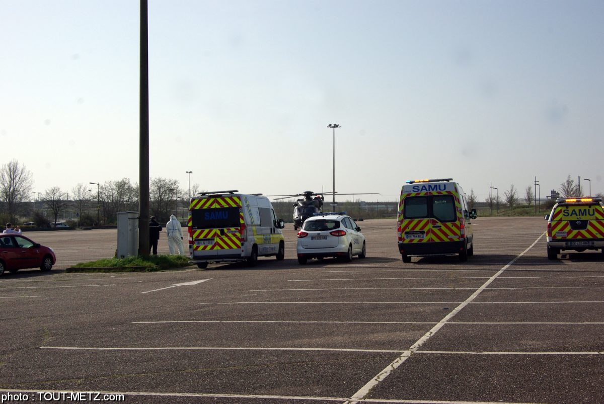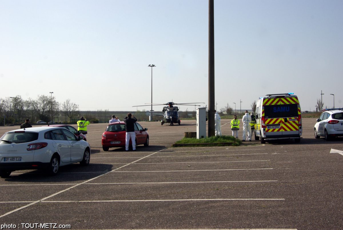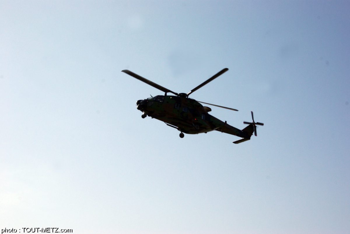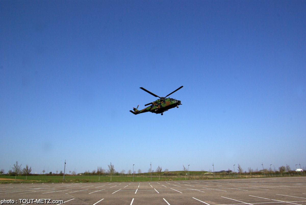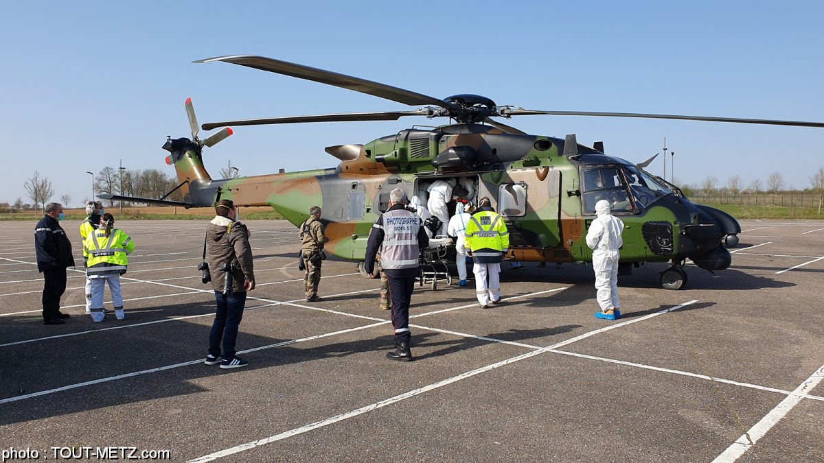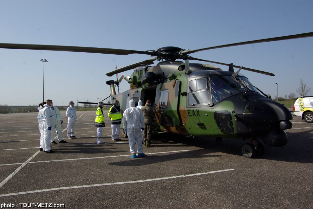 L’ hélicoptère militaire de modèle Caïman du régiment de Phalsbourg, s’est posé à Metz Expo vers 9h40 où deux ambulances et leurs équipiers l’attendaient. Après avoir monté deux patients à bord, l’hélicoptère a redécollé aux environs de 10h15 en direction de la ville de ESSEN (Nord de l’Allemagne) à 300km de là.
