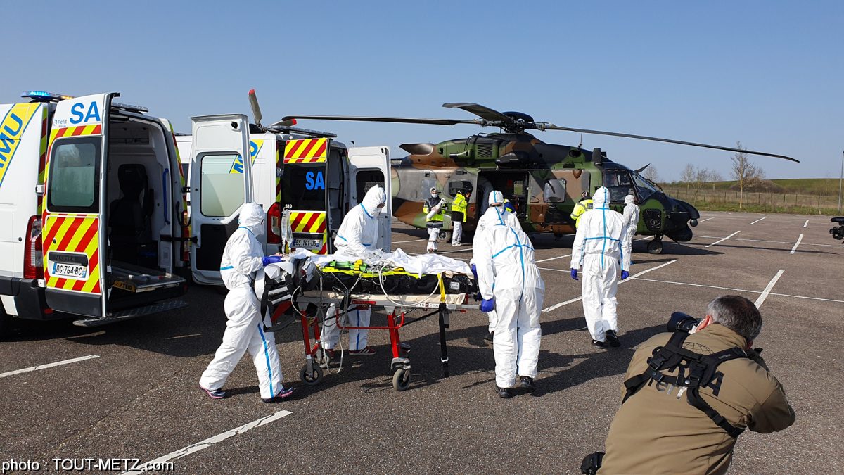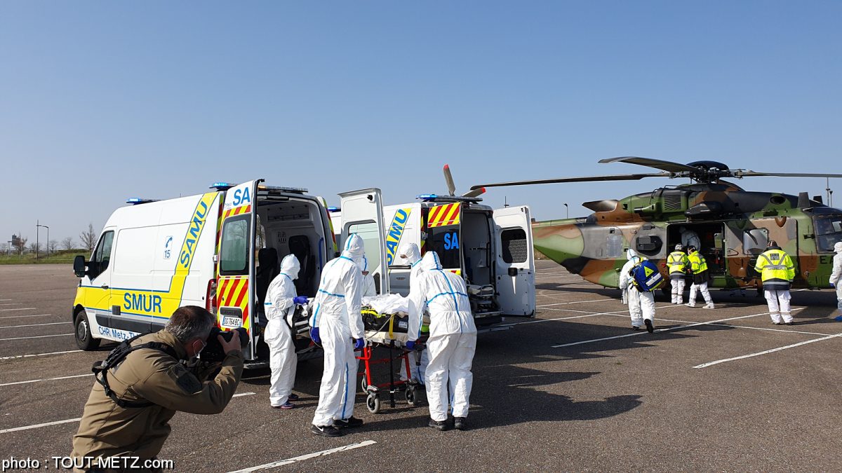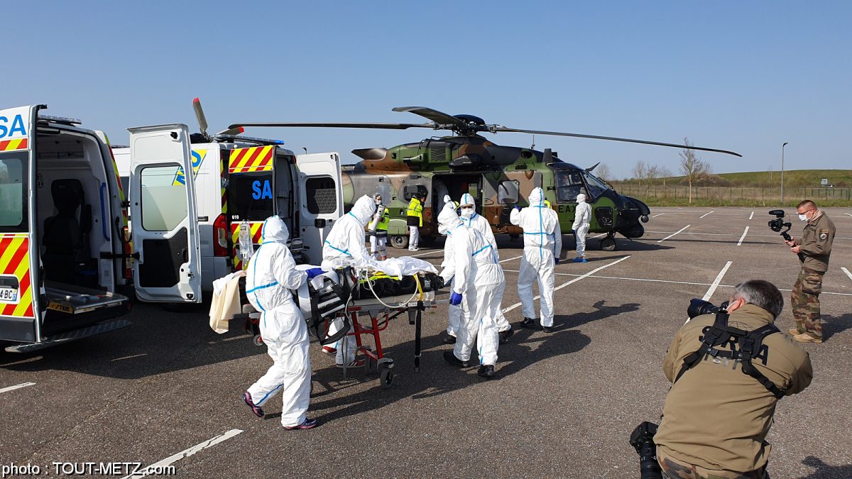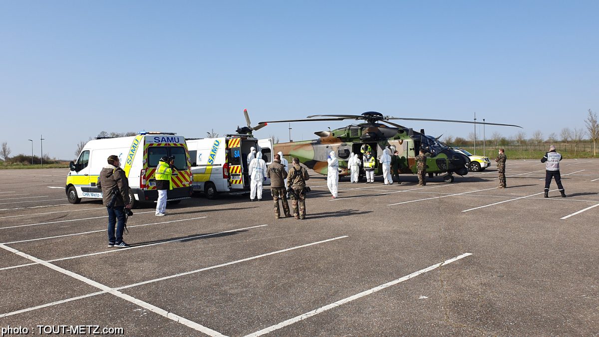 Après une première évacuation réalisée ce lundi 23 mars par des hélicoptères allemands sur ce même parking de la foire expo de Metz Grigy, suite à la décision de l’Allemagne de prendre en charge des patients français atteints du COVID-19 (comme nous vous l’annoncions dans cet article), l’armée française a donc commencé ses rotations depuis ce weekend. D’autres devraient encore lieu dans les jours à venir.