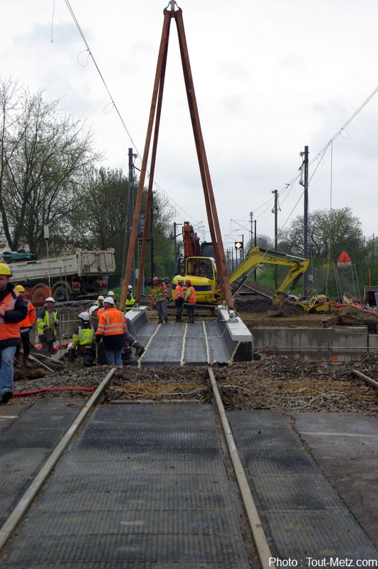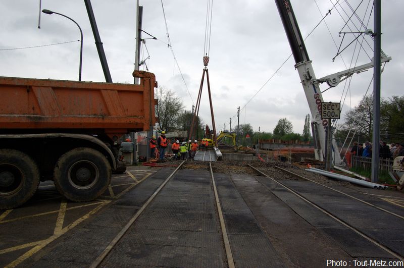Ce dimanche 28 avril 2013, une opération importante liée au chantier de suppression du passage à niveau n°1 de Metz la Patrotte a eu lieu.