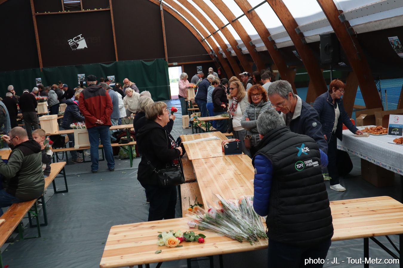 Ce mercredi, une cinquantaine de bénévoles ont réceptionné quelque 30 000 fleurs dans les installations du Tennis Club Montigny, qui met à disposition une salle couverte pour la deuxième année de suite. « Ici, on est aussi dans notre rôle sociétal. Nous sommes un club sportif avec une politique dédiée à la santé. La boucle est bouclée avec l’accueil de l’emballage des roses pour soutenir la lutte contre le cancer », souligne Pascal COQUÉ, son président.