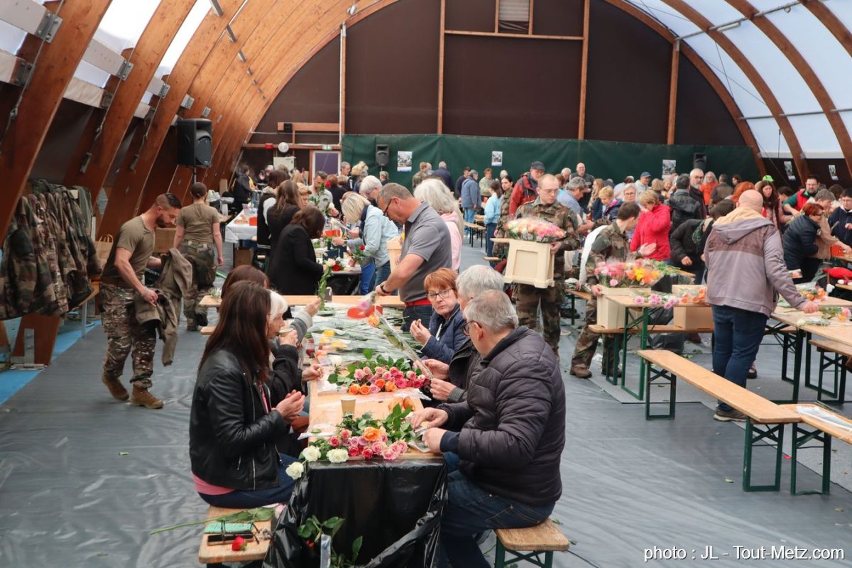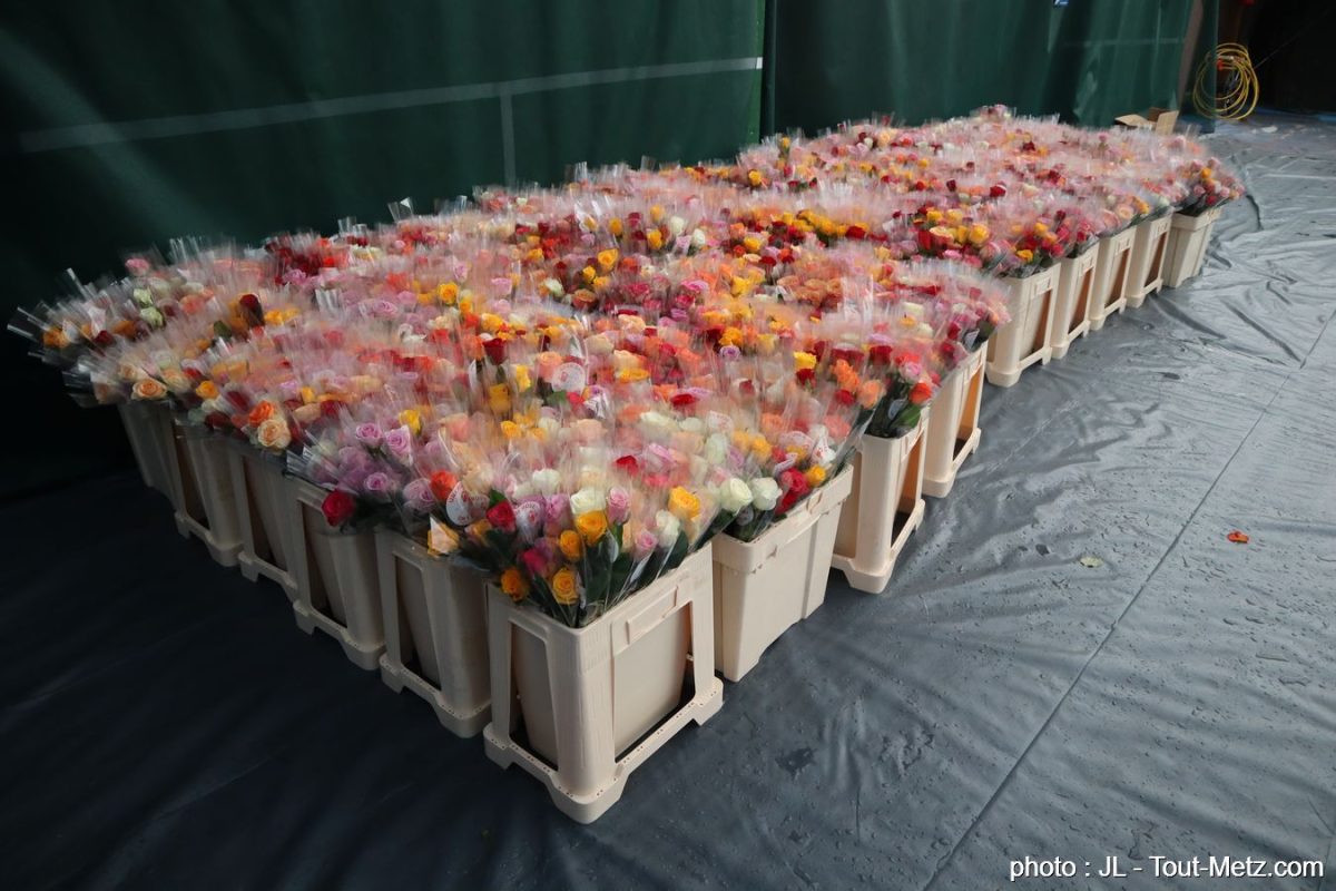 Aujourd’hui, ils étaient près de 150 à s’être réunis pour participer à la préparation des roses. Les jeunes du service militaire volontaire de Montigny se sont joints aux manœuvres, s’occupant de porter les bacs pour aider les équipes chargées du désépinage et de l’emballage sur les 5 postes de travail.