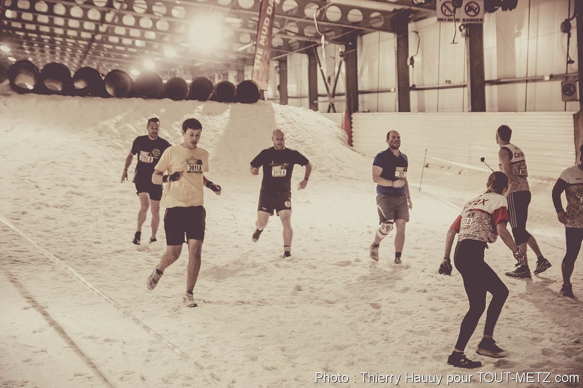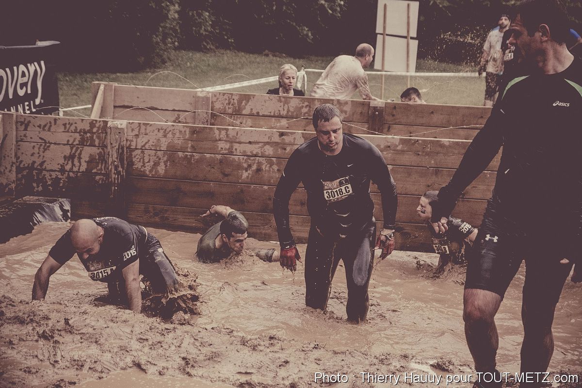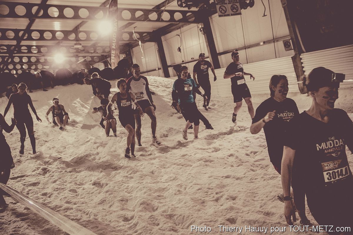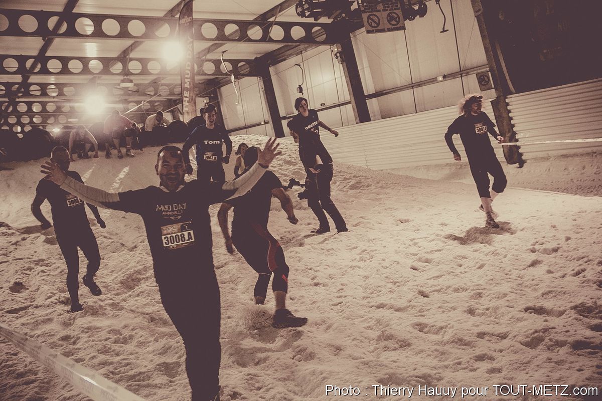 Montée puis redescente de la piste de ski du snowhall, passage intégral dans un bain d’eau glacée, dénivelés par dizaines… ramper, monter sur des cordes, se balancer, glisser dans la boue, grimper des obstacles en bois… les « Mud Guys » n’avaient pas de quoi s’ennuyer.