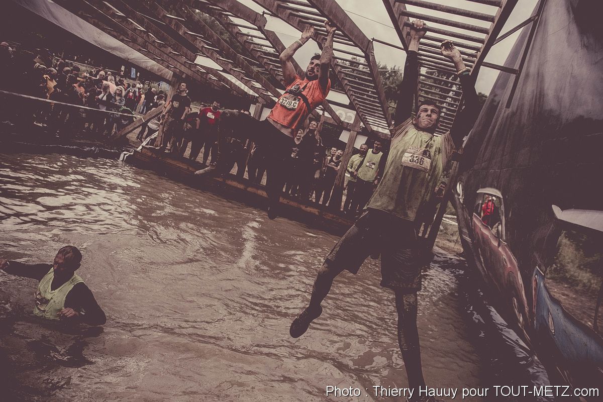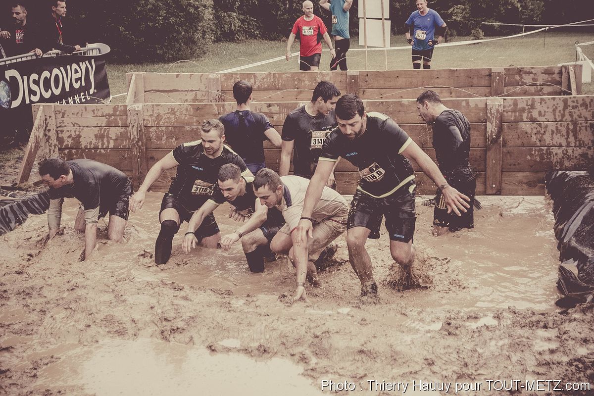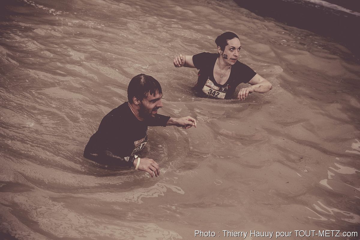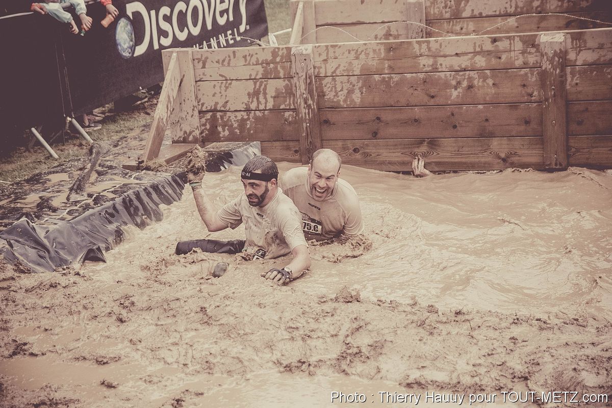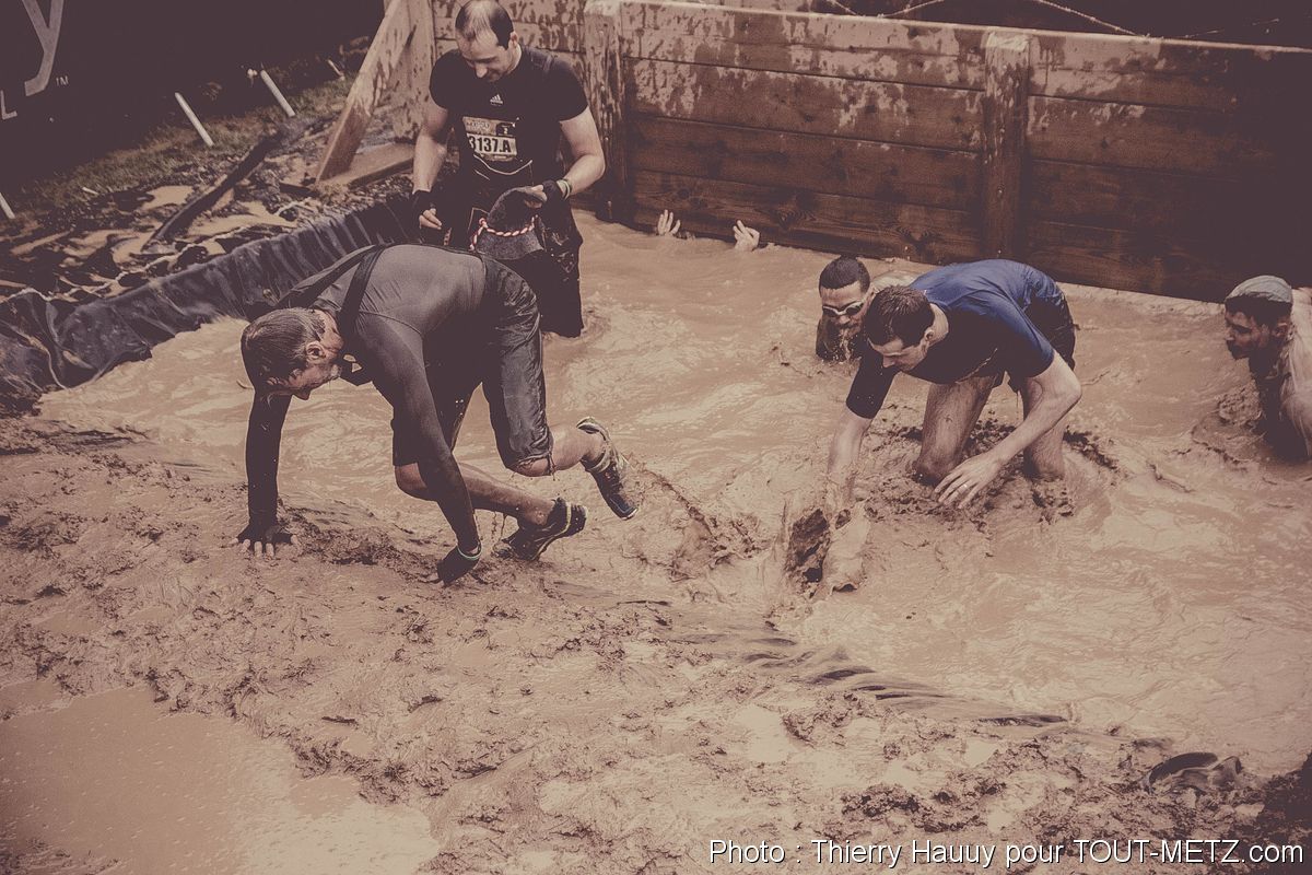 Montée puis redescente de la piste de ski du snowhall, passage intégral dans un bain d’eau glacée, dénivelés par dizaines… ramper, monter sur des cordes, se balancer, glisser dans la boue, grimper des obstacles en bois… les « Mud Guys » n’avaient pas de quoi s’ennuyer.