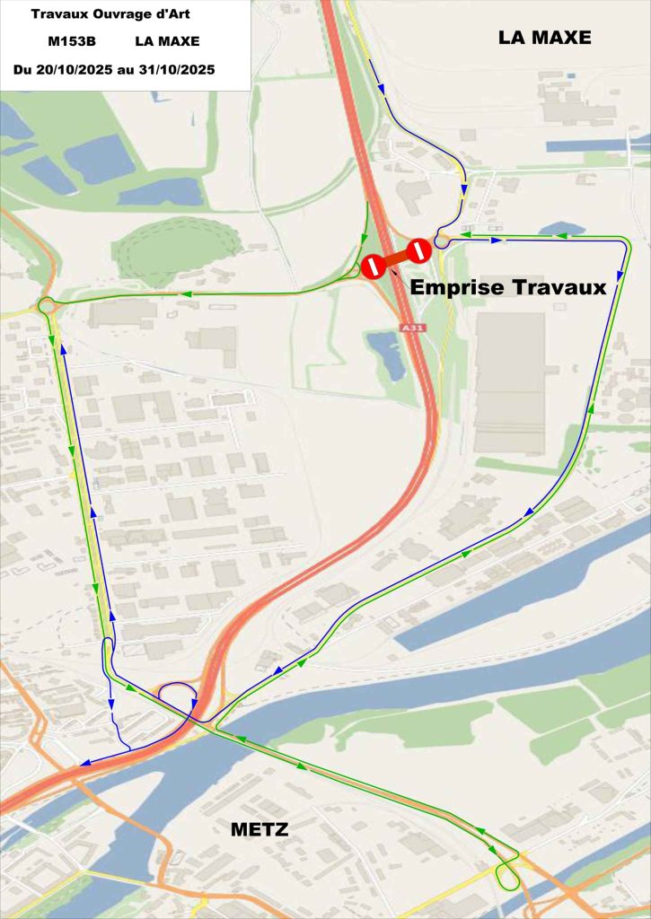 Les véhicules en provenance de Woippy ou de l’autoroute A31 (sortie 34), dans le sens Luxembourg vers Nancy, et voulant aller vers La Maxe ou l’autoroute A31 en direction de Luxembourg, seront invités à emprunter :