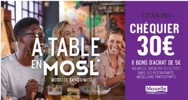 Afin de soutenir une des filières les plus affectée par la crise sanitaire, ainsi que le pouvoir d’achat des mosellans, le département met en place un jeu concours, du 5 au 12 juillet 2021, offrant 5 000 chéquiers d’une valeur de 30€.