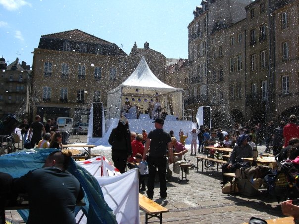 Dimanche 18 mai, à midi, une Auberge espagnole s’est déroulée place Saint-Louis. Le concept ? vous venez avec votre salade, votre casse-croûte, votre boisson et vous partagez votre repas avec de nombreux inconnus!