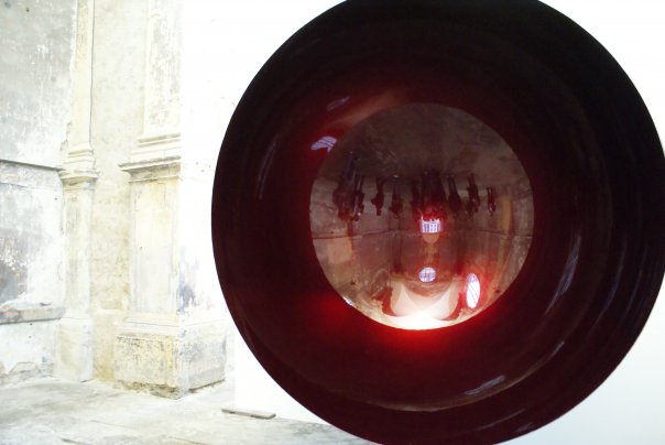 Exposition à la chapelle des Trinitaires, une demi-sphère exposée qui donne un improbable reflet des admirateurs jouissifs, une impression de monde a part, d’écran surréaliste… Une tentation d’y plonger la main, comme un espoir de se sentir happer…